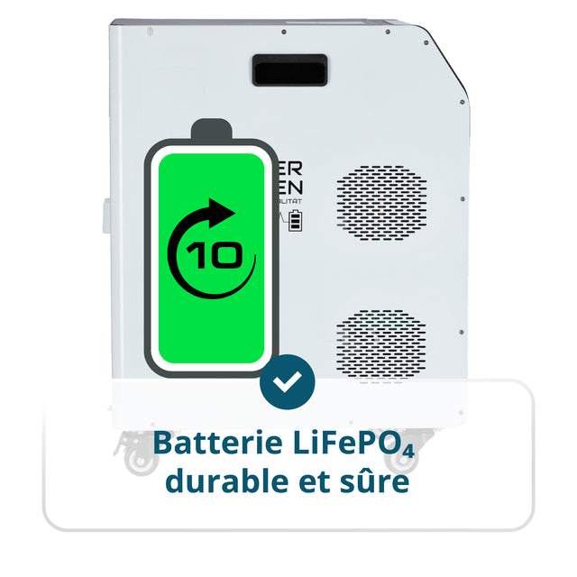 • Odolná a bezpečná LiFePO₄ baterie – životnost až 6000 cyklů a více než 10 let provozu zajišťuje spolehlivou investici do energetické nezávislosti.