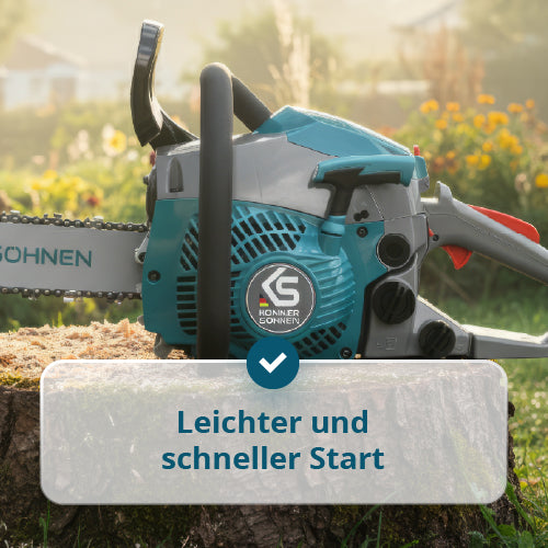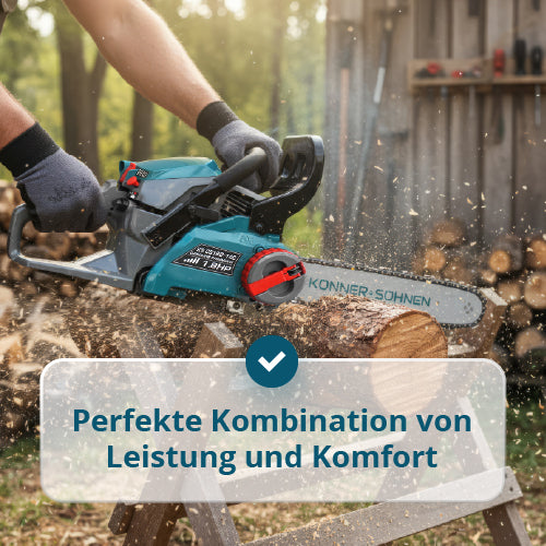 • Hoher Sicherheitsstandard – die Trägheitskettenbremse stoppt die Kette sofort beim Rückschlag, minimiert Verletzungsrisiken und ermöglicht sicheres Arbeiten.