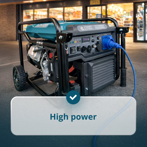 • High power of 6.5 kW (maximum) and 6.0 kW (nominal) when operating on gasoline enables reliable power supply for energy-intensive equipment and ensures stable electricity, with only a 10% power reduction when running on gas, ensuring effective operation with minimal loss in performance.