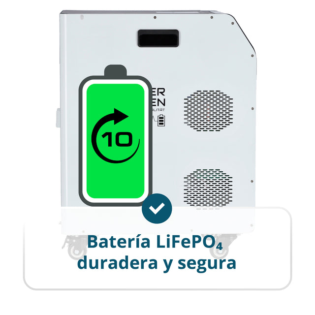 • Batería LiFePO₄ duradera y segura – con una vida útil de hasta 6000 ciclos y más de 10 años de funcionamiento, representa una inversión fiable en independencia energética.