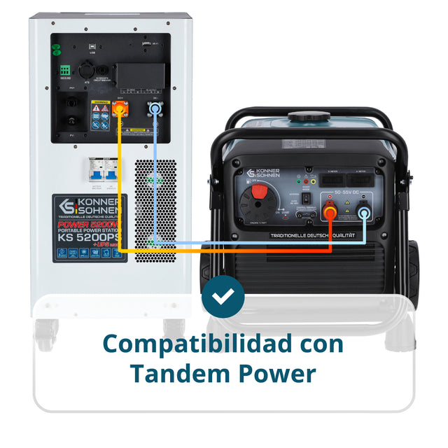 • Compatibilidad con Tandem Power – gestión inteligente cuando se utiliza con un generador KS 24V-DC: cuando el nivel de carga de la batería baja, el generador se enciende automáticamente, funciona con máxima eficiencia y se apaga en cuanto la estación está cargada.