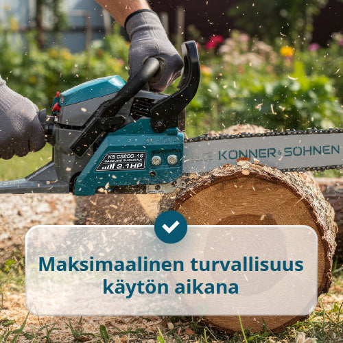 • Sécurité maximale lors du travail – le frein à inertie de la chaîne arrête instantanément la chaîne en cas de rebond, réduisant le risque de blessure et permettant de travailler en toute confiance, même sous forte charge.