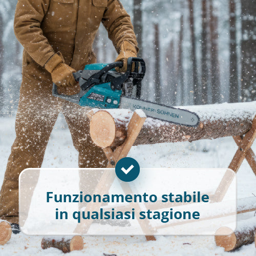 • Démarrage facile et rapide – le système combine un bouton STOP automatique, une pompe à carburant manuelle (primer) et un lanceur avec ressort supplémentaire, garantissant que la tronçonneuse est toujours prête à l'emploi.
