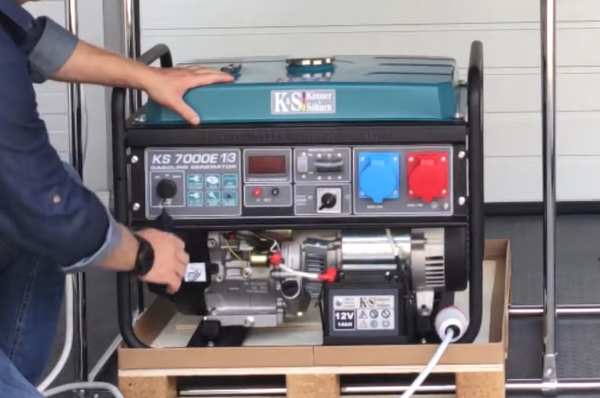Inbedrijfstelling van een benzinegenerator 'Könner & Söhnen'