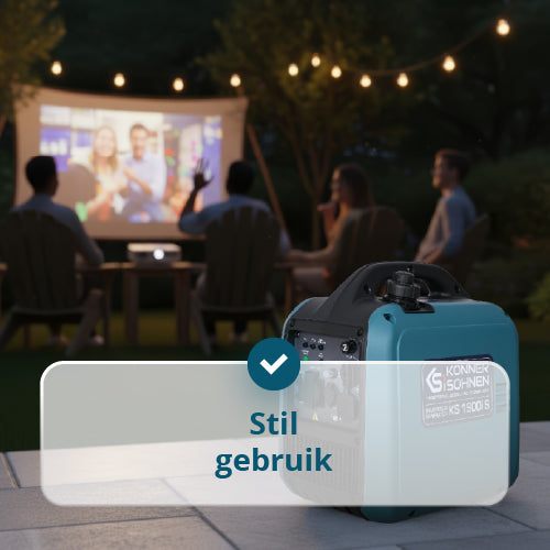 • Invertertechnologie. Ingebouwde elektronische module met microprocessorbesturing bewaakt de werking van de generator en zorgt voor een stabiele 230V 50Hz zuivere sinusgolfuitgang, geschikt voor gevoelige elektronica zoals medische apparatuur, computers en precisie-instrumenten.