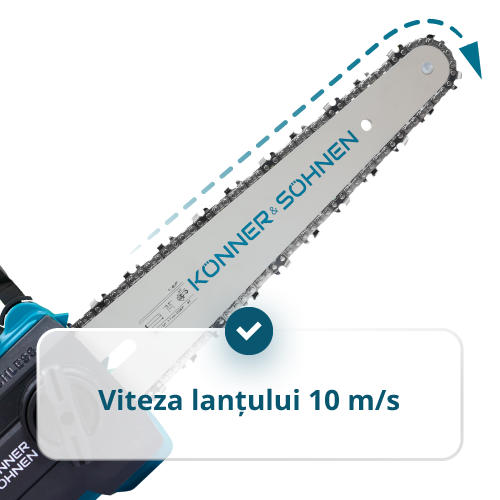 - Mecanism de tensionare a lanțului „fără unelte” – permite strângerea rapidă sau înlocuirea lanțului direct pe șantier, fără utilizarea șurubelnițelor sau cheilor.