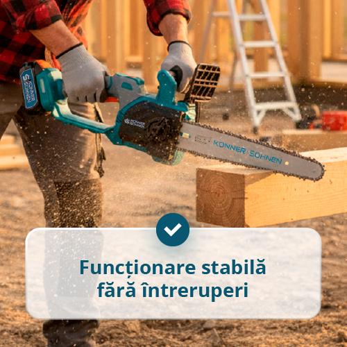- Design compact și greutate redusă – oferă o prindere confortabilă și control ușor al ferăstrăului, permițând lucrul chiar și cu o singură mână, în special în zone înguste sau greu accesibile.