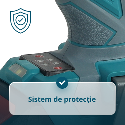 • Sistemul de protecție asigură siguranța uneltelor și a utilizatorului în timpul funcționării, incluzând protecție împotriva supraîncălzirii, suprasarcinii și descărcării excesive a bateriei.
