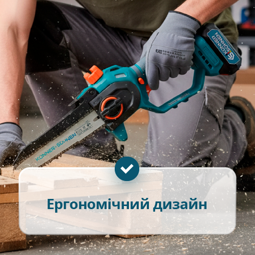 • Tool-free chain tensioning mechanism – enables quick tightening or replacement of the chain directly at the worksite, without screwdrivers or wrenches.