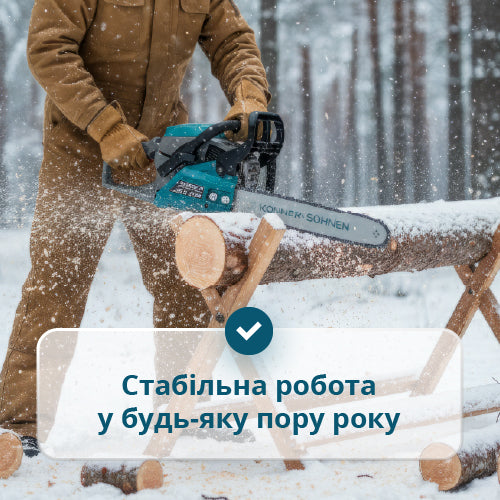 • Démarrage facile et rapide – le système combine un bouton STOP automatique, une pompe à carburant manuelle (primer) et un lanceur avec ressort supplémentaire, garantissant que la tronçonneuse est toujours prête à l'emploi.